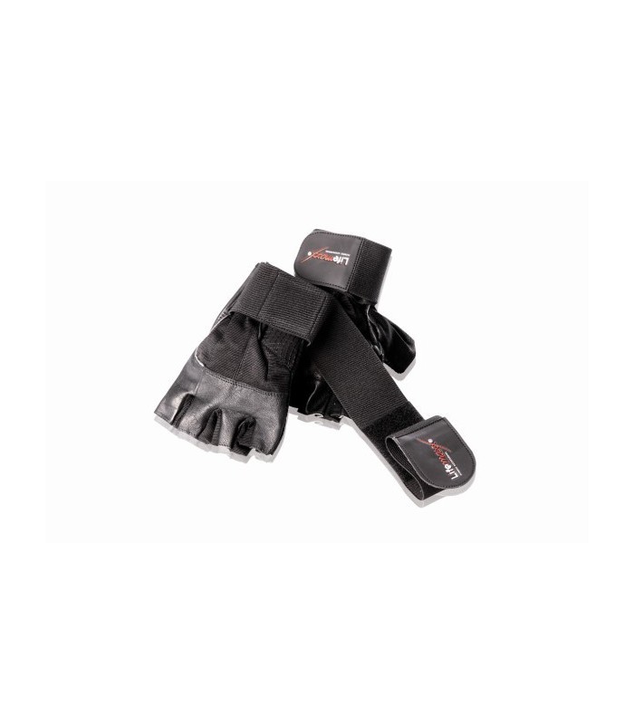 GUANTI PER SOLLEVARE PESI CON FETTUCCIA PER LA PROTEZIONE POLSO COLORE NERO, MATERIALE: PELLE & SPANDEX, DISPONIBILI NELLE SEGUENTE MISURE: S, M, L, XL
