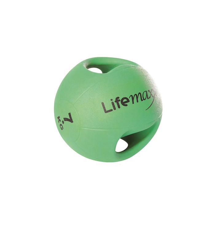 PALLE MEDICHE CON IMPUGNATURE ERGONOMICHE, SUPERFICIE IN GOMMA ANTISCIVOLO, DISPONIBILE IN DIVERSE PESI E COLORI: 6kg (GIALLO), 7kg (VERDE), 8kg (ARANCIONE), 9kg (BLU), 10kg (VIOLA)