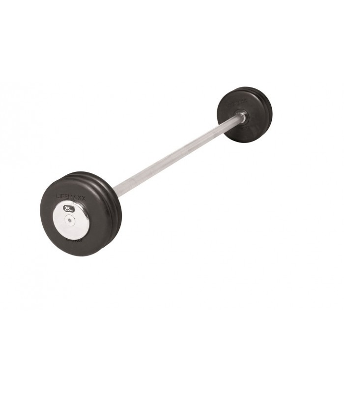 BILANCIERE DRITTO CON IMPUGNATURA CROMATA DI ALTA QUALITA 975mm, DISCHI RICOPERTI DA GOMMA RESISTENTE DISPONIBILI DA 10 A 50kg CON INCREMENTI DI 1kg