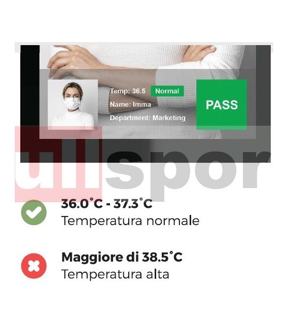 Il personale, prima di entrare nella sede di lavoro potrà essere sottoposto al controllo della temperatura corporea tramite la termocamera integrata nel dispositivo. Se la temperatura risulterà superiore a 37,5° C, non sarà consentito l’accesso.
