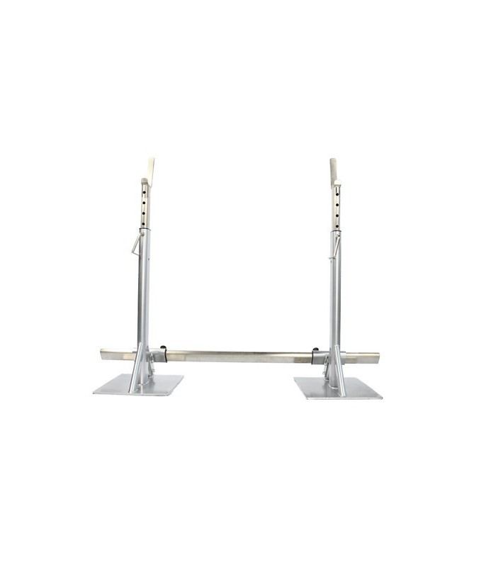 SUPPORTO RINFORZATO PER LO SQUAT COLORE ARGENTO, ALTEZZA REGOLABILE DA 900mm A 1560mm, LARGHEZZA REGOLABILE IN POSIZIONE LIBERA O COLLEGATA CON BARRA DI COLLEGAMENTO, PESO 60kg